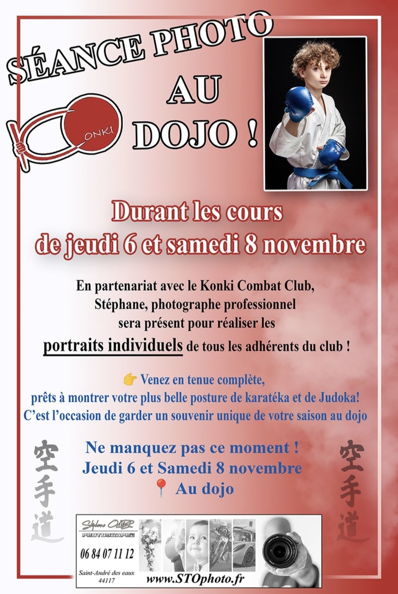 Présence de Stéphane Olivier , photographe professionnel jeudi 6 /11 et samedi 8/11 qui vous propose la réalisation de portrait individuel en karaté -gi ou judo-gi.